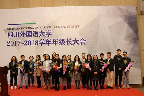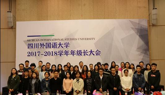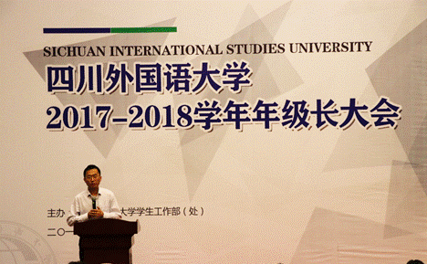 10月24日下午3:00,四川外国语大学2017-2018学年年级长大会在宏文楼国际报告厅圆满举行。四川外国语大学校学工部部长、学生处处长吴维均,校学工部副部长、学生处副处长苏雪和部分院(系)辅导员代表、各院(系)年级长参加了此次活动。