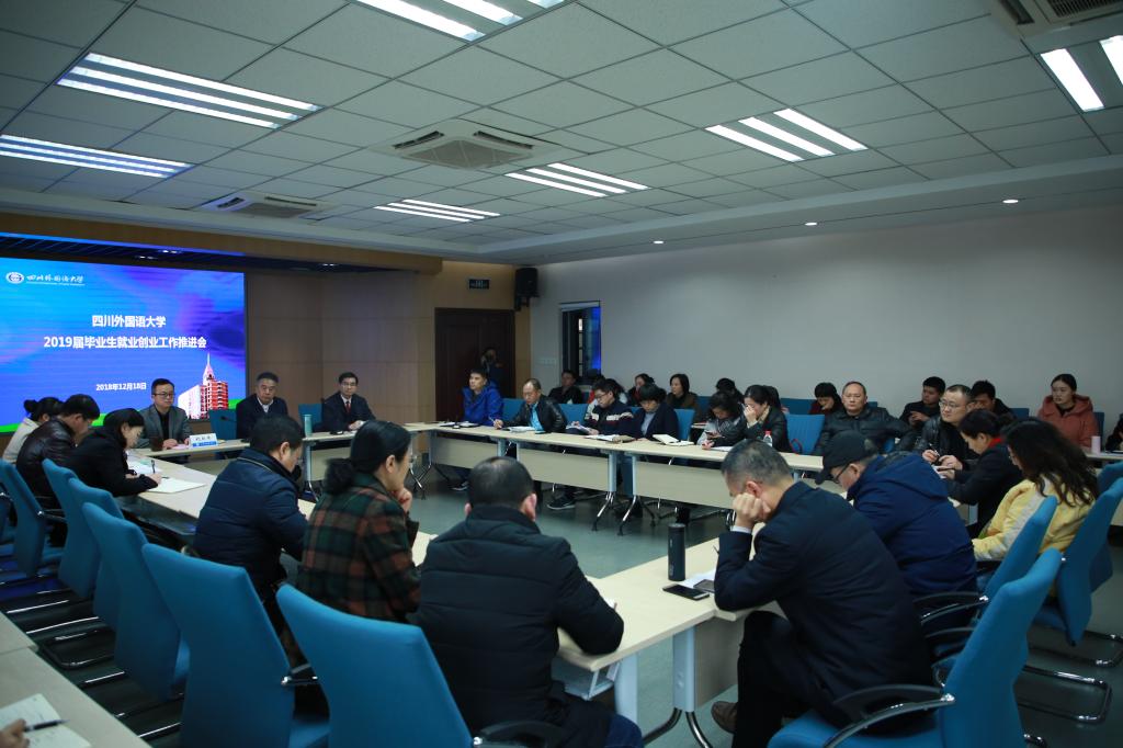 12月18日下午,四川外国语大学就业工作推进会在西区行政楼C-517会议室成功举行。学校党委书记明国辉、校长李克勇和副校长祝朝伟出席了本次会议。我校就业工作领导小组成员,各院系党政负责人和分管学生工作的副书记参加会议。会议由招生就业处处长秦勇主持。