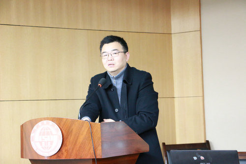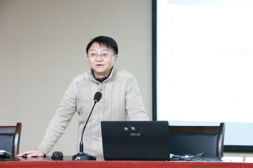 英语学院院长张旭春教授主持报告会,他重点阐述了“外国传世经典名著编译项目”、“《中国文学》研究项目”两个重点项目的构想和进展情况,并对2016年的英语学院的科研工作进行了安排。