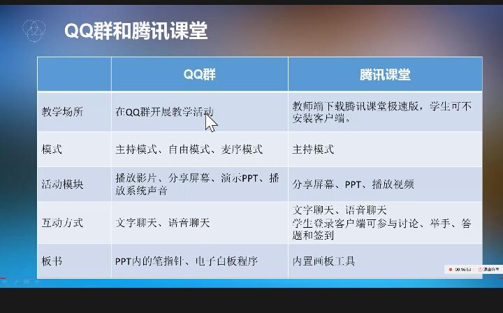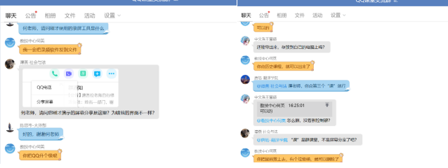 在培训第二阶段时间里,何老师重点演示了QQ课堂和腾讯课堂两个目前使用率较高、学生反映良好的平台操作,并根据老师们的需求,展示了学生签到、课堂互动、板书、录屏等各项功能。参训教师们也就在线教学中各自的问题和经验进行了热烈的线上交流和讨论。