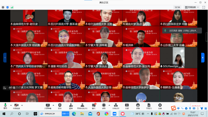 7月10日至11日,学校成功举办“四川外国语大学第三届优秀本科生夏令营”。本届夏令营各项活动采取远程在线方式进行,设置1个主会场、10个分会场。夏令营活动由研究生院承办,英语学院、翻译学院、商务英语学院、中国语言文化学院、国际教育学院、德语学院、日语学院、西方语言文化学院、东方语言文化学院和国际关系学院等10个研究生培养学院共同协办。