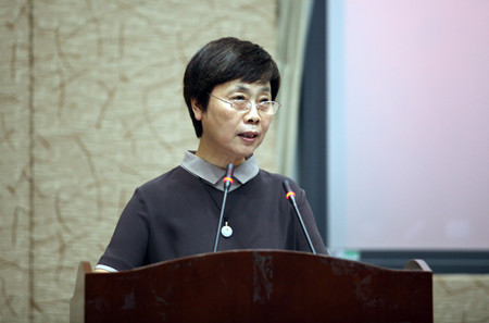 导师代表冯亚琳教授对研究生院的揭牌成立表示欣慰和自豪。她对德语学科所走过的历程和取得的成绩进行了温馨的回顾,同时缅怀了前辈学者在研究生教育中所作出的重要贡献。她衷心祝愿我校研究生教育明天更美好。