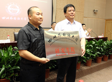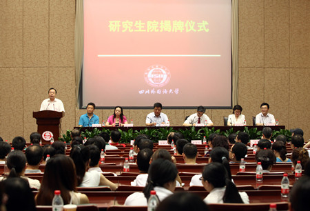大会开始,副校长董洪川宣读了《四川外国语大学关于研究生部更名为研究生院的通知》,宣读完毕后,党委书记马新发向研究生院授牌,研究生院院长王仁强接牌。