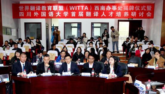 12月14日,世界翻译教育联盟(WITTA)西南办事处揭牌仪式在我校成功举行。我校副校长、中国翻译协会副会长、重庆翻译学会会长董洪川以及副校长、中国译协对外话语体系研究会副主任祝朝伟出席揭牌仪式。研究生院院长、MTI教育中心主任王仁强以及各MTI培养院系主要负责人和研究生导师也一同出席了揭牌仪式。世界翻译教育联盟常务副秘书长麦文主持揭牌仪式。