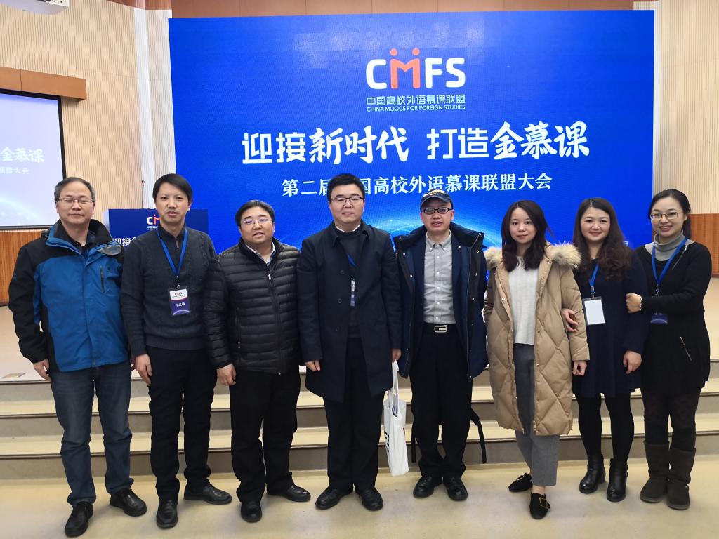 12月23日,以“迎接新时代,打造金慕课”为题的第二届中国高校外语慕课联盟大会在北京外国语大学举行。来自全国146所高校的200余位院校领导及专家学者在北京外国语大学针对外语类在线开放课程创新发展进行新方略研讨。我校作为联盟副理事长单位,由董洪川副校长带队,教务处王伟副处长,翻译学院胡安江院长,商务英语学院黄绍胜副院长,大学外语教学部马武林教授及大外部青年教师刘姗姗、周欣、刁阳碧等共同出席了此次会议。
