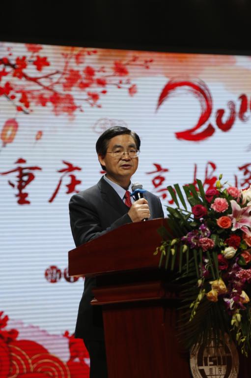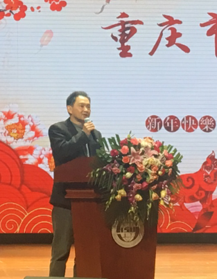 1月4日下午2点30分,欢快激昂的开场音乐拉开了演出的序幕。重庆市教委高教处李翔老师,四川外国语大学校长李克勇,重庆市高校图工委秘书长、重庆大学图书馆党总支书记彭晓东分别上台致辞,给大家带来了新年的祝福。
