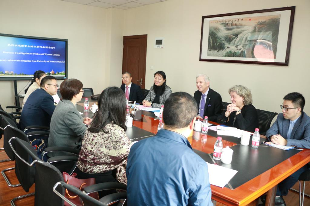 11月4日上午,西安大略大学国际合作与交流主任李木子博士(负责艺术与人文学院、音乐学院和健康科学学院与中国的合作与交流)、艺术与人文学院院长Michael Milde教授、音乐学院院长Betty Anne Younker教授一行来访我校。我校国际合作与交流处、法意语系、国际关系学院代表与来宾在西区行政楼A501会晤,就两校在法语、英语、国际关系等专业的联合培养项目、师生短期交流项目等领域展开讨论。双方还就法语专业的合作协议内容进行磋商,推进项目实施,达成合作协议签署。