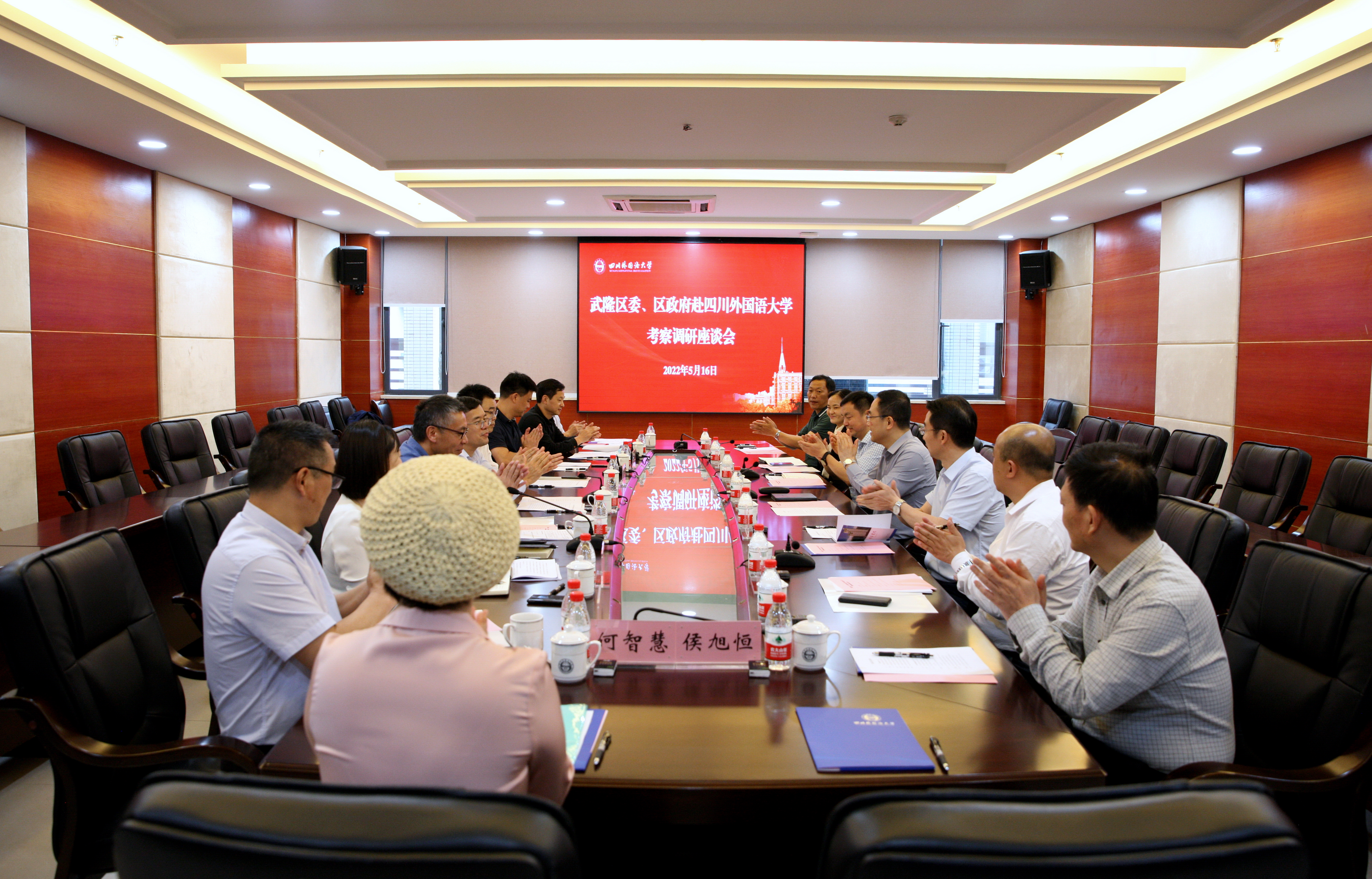 5月16日下午,武隆区委、区政府到我校考察调研,调研座谈会在图书馆505会议室举行。武隆区委书记何庆、区委副书记毛大春,我校党委书记邹渝、校长董洪川出席座谈会并讲话。座谈会由副校长卢波主持。
