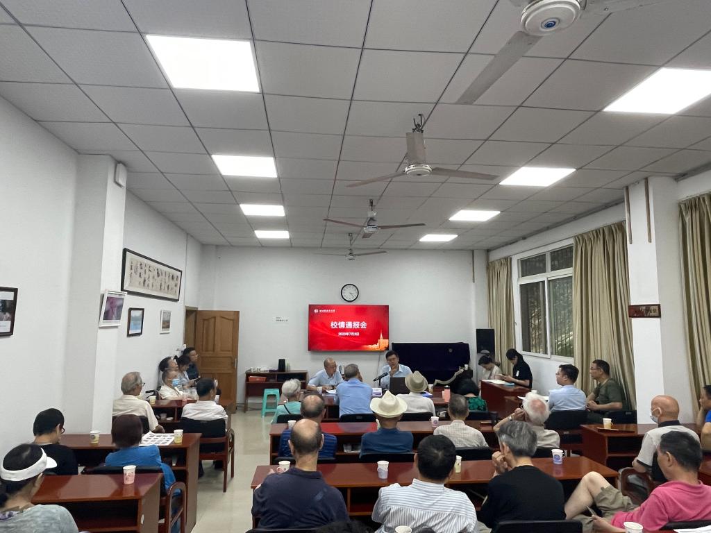 接着,邹渝书记为大家作了校情通报,情况通报主要围绕学校的可持续健康发展、新校区建设的相关情况等方面内容展开,并表示学校党委对我校离退休老同志非常重视,会努力解决大家所提出的问题。校情通报之后,官晴华处长也就离退休工作处2023年度上半年的工作情况,为大家作了简要的通报。