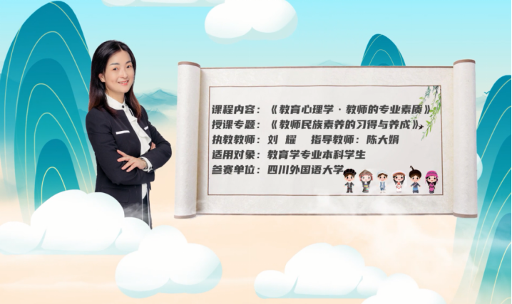 为全面贯彻中央民族工作会议精神,认真落实《教育部等四部门关于印发深化新时代学校民族团结进步教育指导纲要的通知》(教民〔2021〕1号)要求,重庆市教育委员会于近日举办了民族团结进步教育优质课展示活动,我校教师刘耀(执教教师)和陈大娟(指导教师)荣获高校组一等奖。刘耀和陈大娟的参赛作品是为时四十分钟的《教师民族素养的习得与养成》,通过对教师民族素养概念的提出和论证,助力教师专业素质的提升,促进准教师国家认同感、民族自豪感和历史使命感的形成。