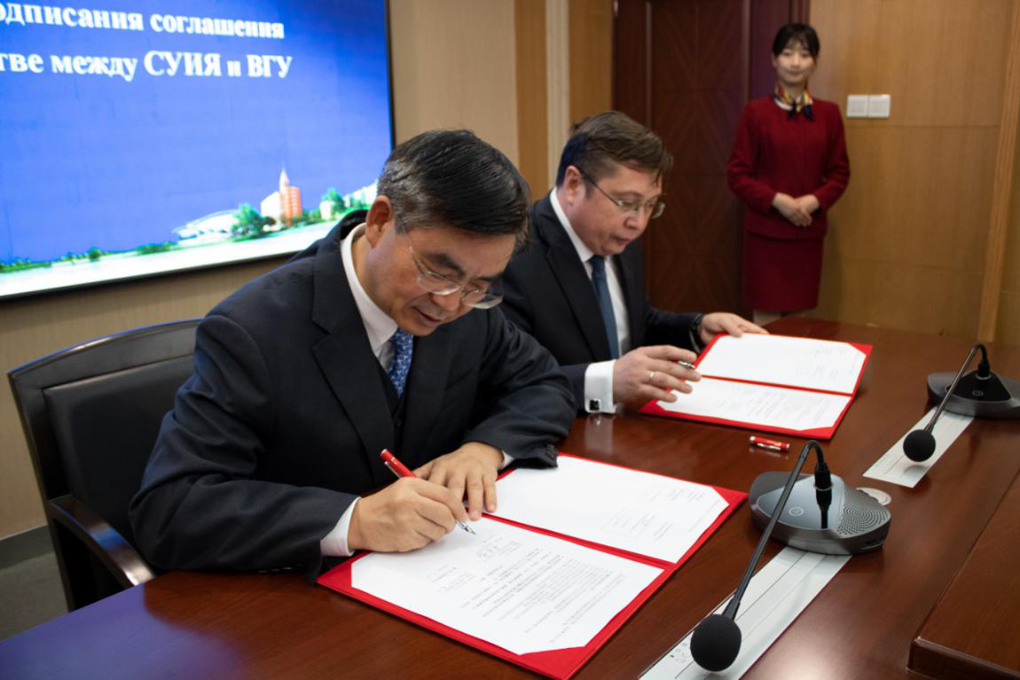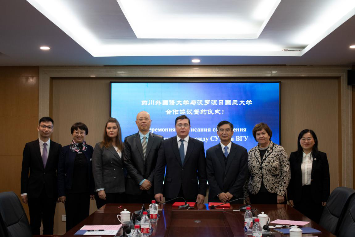 双方在西区行政楼A301进行会谈。会上,李克勇校长向沃罗涅日国立大学校长一行表示了热烈的欢迎和诚挚的感谢。他回顾了两校自上世纪开始的合作历史与取得的成效,提出两校应着眼于双方共同点,充分开展多层次、宽领域的合作交流项目,积极推动多样化、高水准的协同学术研究。基于两校悠久的合作基础,恩多维茨基校长提出深化和拓展两校现行合作的建议,如开展包括本、硕、博等各层次的交流项目,共同编写教材,两校专家合作研究“一带一路”相关课题等。会后,两校校长续签了四川外国语大学与沃罗涅日国立大学合作协议,继续并深化两校间的合作交流。