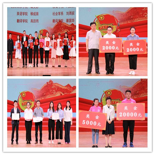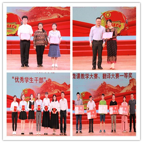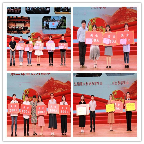 活动以朗诵《青春》和合唱《我们的新时代》开场。慷慨激昂的朗诵,饱含深情的歌声,表达了川外青年对新时代中国特色社会主义的歌颂,展现了川外青年的青春活力与家国情怀。随后,表彰环节中各领导、嘉宾分别为优秀社团,优秀学生会,第二课堂优秀成果,五四红旗团总支、团支部,优秀共青团员、共青团干部、学生干部,青春喜迎十九大系列活动一等奖,红岩十佳青年,中国大学生自强之星,第十五届挑战杯全国大学生课外学术科技作品竞赛获奖团队,中国电信奖学金暨社会主义核心价值观先进个人等先进集体和个人颁发证书、奖金。