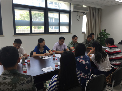 最后,调研组与参会人员进行交流,群策群力,共同探讨今后的军训工作。
