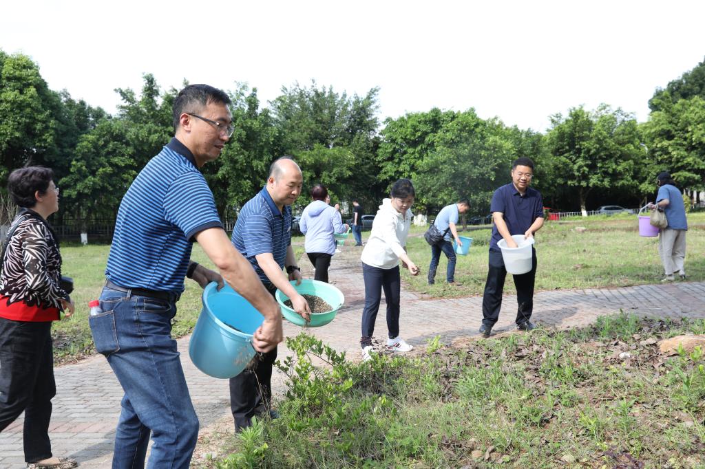 为进一步美化校园环境,学习贯彻习近平总书记关于“学党史、悟思想、办实事、开新局“的重要讲话精神,5月18日下午3:00,副校长王仁强与后勤基建管理处党总支全体党员一起在图书馆北侧绿化带开展了党员义务播撒景观花籽活动。