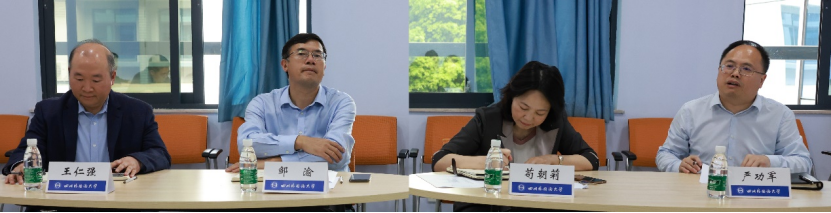 为了抓好学校智慧校园建设“十四五”规划实施,促进信息化建设银校合作和校企合作,更好地为学校“双一流”建设、新文科建设、国际化特色高校建设等赋能,4月22日下午,党委书记邹渝、副书记苟朝莉、副校长王仁强、副校长严功军带领党政办公室、教育规划与评估院、教务处、计划财务处、资产管理处负责人到网络信息中心开展智慧校园建设调研,举行了信息化工作座谈会。网络信息中心班子成员和技术骨干参加了座谈。会议由副校长严功军主持。