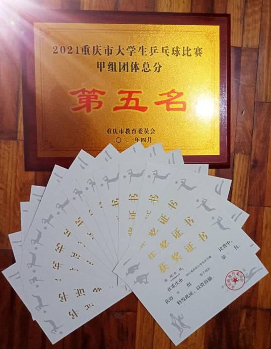 由重庆市教育委员会主办、重庆邮电大学承办的2021重庆市大学生乒乓球比赛于4月19日至23日顺利举行,本次比赛吸引了重庆市40余所普通高等学校、500余名学生参赛,规模为历年之最。比赛各组设男团、女团、男单、女单、男双、女双、混双等7个项目。我校冉建等9名同学在周亚莉老师的带领下参加了此次角逐,最终夺得甲组男女团体第五、男双第一、混双第二、男单第三,创造了川外乒乓球队自参赛以来最佳成绩。