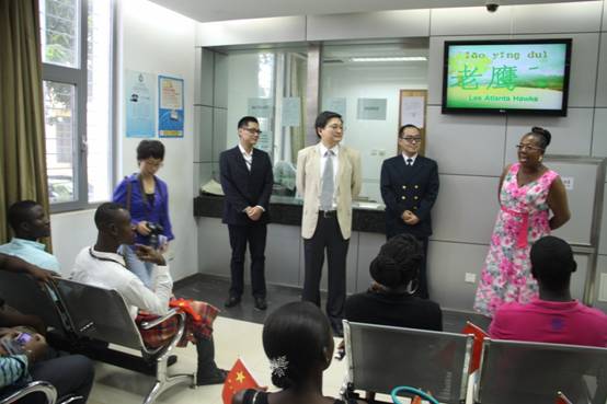 在签证大厅,以办理赴中国的手续为切入点,使馆与师生进行了跨文化的沟通。借助多媒体,使馆当地员工现身说法,与孔院师生一起体验了一场别开生面的汉语学习互动。