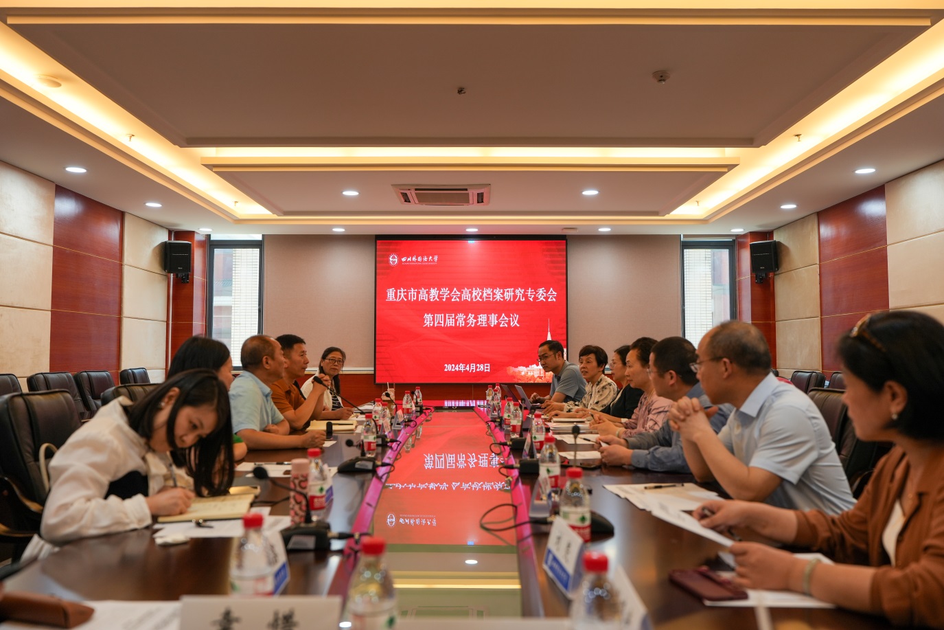 2024年4月28日,重庆市高教学会高校档案研究专业委员会第四届常务理事2024年第一次会议在四川外国语大学图书馆五楼505会议室召开。市教委办公室六级职员(副研究馆员)、专委会副理事长王静,重庆大学档案馆副馆长、专委会秘书长喻玲,我校图书馆(档案馆)馆长杨俊、副馆长李江等高校档案馆馆长及相关人员参加了此次会议。
