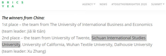 除了老师们积极参与推动金砖合作外,我校优秀学子也踊跃报名参加金砖相关活动。在俄罗斯能源署主办、金砖国家青年能源署承办的“第五届金砖国家全球青年能源峰会”中,我校国际关系学院2018级国际政治专业张旭同学、2018级教改班徐乐同学组建了中国学生学术小组,并以《The policy of reducing CO2 and other greenhouse gas emission: global trends, capture and storage technology and the prospects》为题的学术论文,在世界各地的选手中脱颖而出,最终获得团体第二名的好成绩。