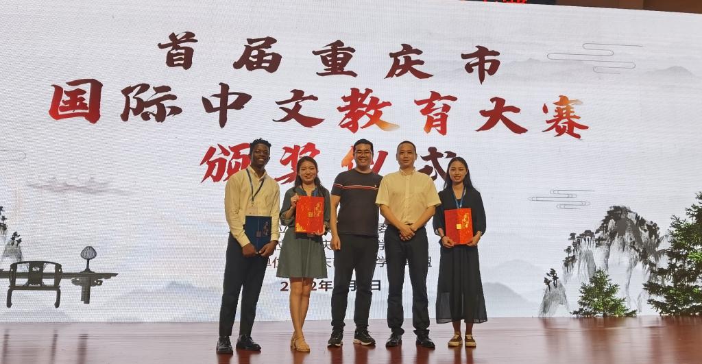 2022年5月31日至6月1日,由重庆市教育委员会主办、重庆师范大学承办、重庆市孔子学院工作联盟协办的首届重庆市国际中文教育大赛决赛在重庆师范大学校友会堂顺利举行。我校学子在决赛中取得佳绩,中文学院中国学生甘小蓉、杜静雯、张馨悦、朱辉辉分别荣获中国学生组一等奖、二等奖、三等奖和优秀奖,中文学院多哥籍国际学生刘简(DOUHADJI-COMBEY YAO MODESTE)荣获国际学生组一等奖。