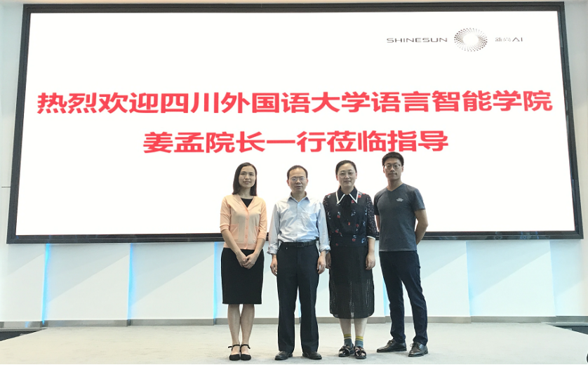 在座谈中,姜孟院长介绍了四川外国语大学语言智能学院相关情况。他表示,四川外国语大学语言智能学院是全国首个冠名“语言智能”的高校二级学院,依托我校外国语言文学市级一流学科和重庆市“‘人工智能+’学科群建设计划”,旨在打造“智慧语言康复、智慧语言教育、智慧语言工程”等领域的学科特色,引领语言智能新产业。赵伟杰总监表示四川新尚人工智能科技有限公司和我校语言智能学院有巨大的合作潜力,希望通过加强政研学产用的合作,推进语言智能的科研成果转化。姜孟教授也就双方下一步具体合作事项如优质资源开辟与整合、团队建设、研究成果转化等提出了意见和建议。