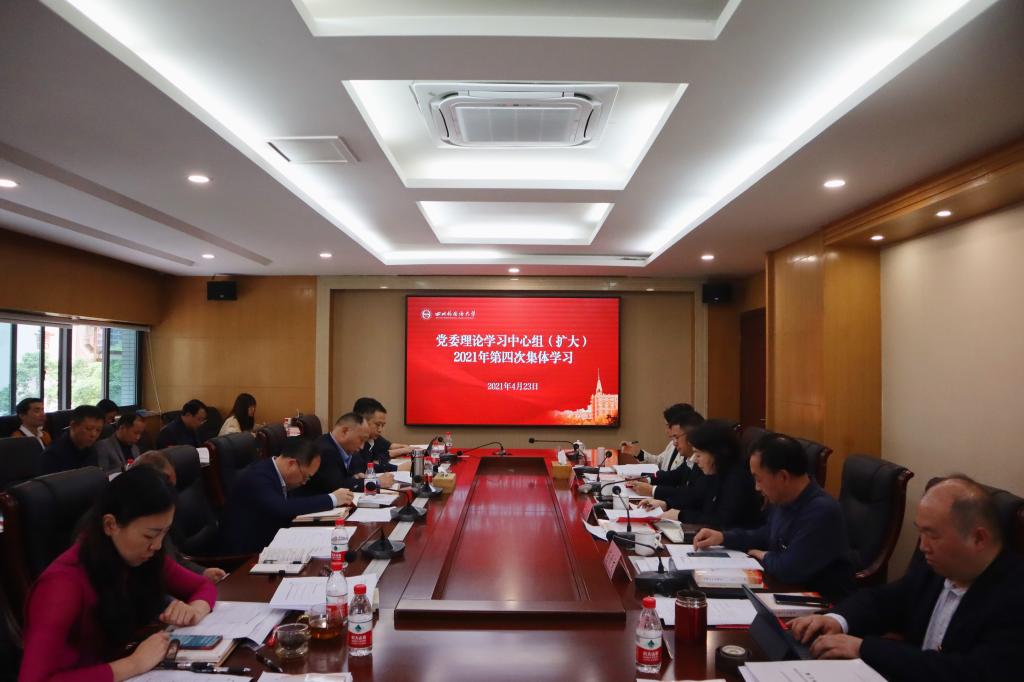 4月23日下午,党委理论学习中心组(扩大)第四次集中学习会举行。校领导、党委委员、党委各部门主要负责人参与此次学习。学习会由党委书记邹渝主持。