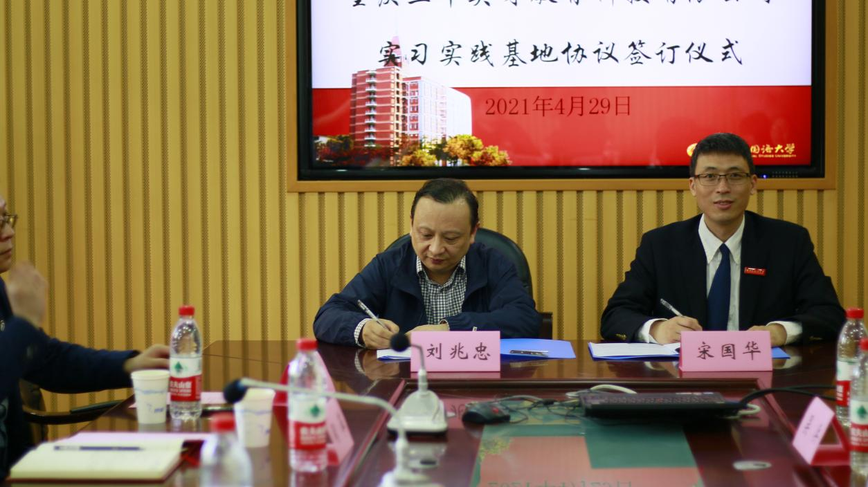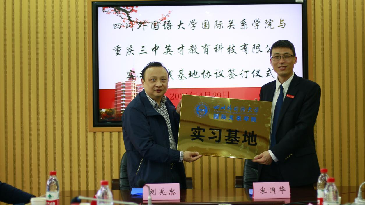 随后,宋国华、刘兆忠代表双方签署了四川外国语大学国际关系学院与重庆三中英才教育科技有限公司实习实践基地的协议,并为实习基地揭牌。