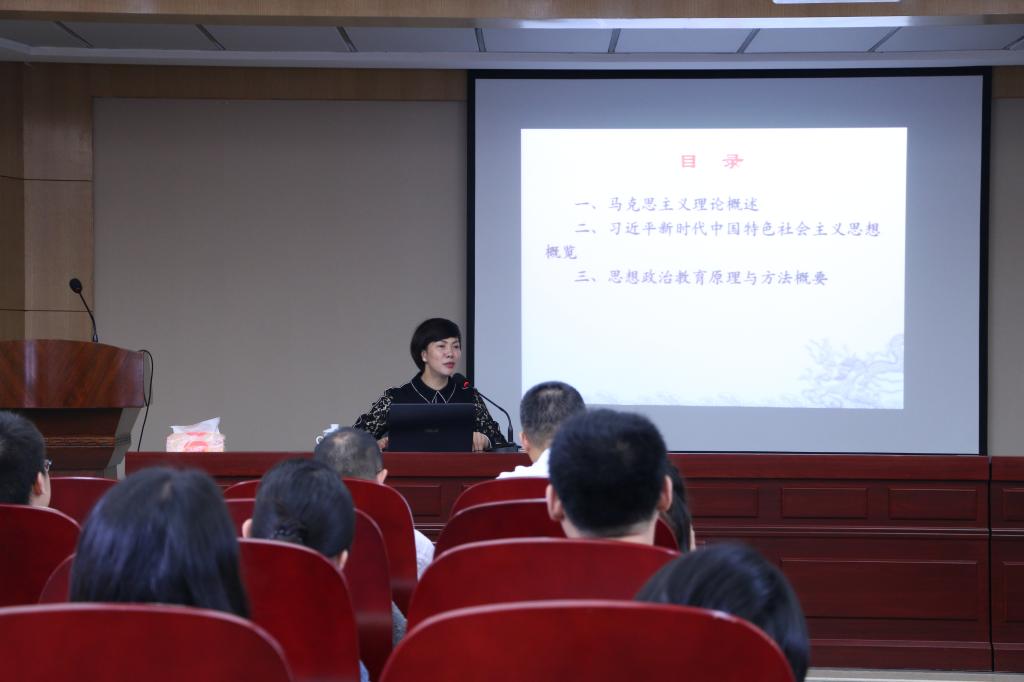 培训着重介绍了三个方面内容:马克思主义理论概述、习近平新时代中国特色社会主义思想概览、思想政治教育原理与方法概要。第一部分,在马克思主义理论概述中,介绍由于生产资料的资本主义私人占有与生产社会化之间的矛盾,无产阶级反对资产阶级的斗争不断发展的必然时代背景,又以社会主义为什么能够产生、社会主义怎样才能产生,社会主义产生后要经历什么样的发展过程?引导大家深入思考社会主义思想的科学性。第二部分,习近平新时代中国特色社会主义思想概览,重点介绍了习近平新时代中国特色社会主义思想的继承性、创新性和时代性,让与会者理解了“八个明确”和“十四个坚持”内在关系,指出习近平新时代中国特色社会主义思想是马克思主义中国化最新理论成果,是21世纪的马克思主义主,解决和关照的是中国未来30年的问题既是中国的,也是世界的。第三部分,张书记向与会人员介绍思想政治教育原理与方法概要,介绍了四个方面的理论,即作为根基的基础理论、作为重点的内容理论、作为关键的方法理论、作为保障的管理理论。张书记指出:“少年强则国强”,国家兴盛依赖于教育,教育成果来源于教师。为人师表,为学生们答疑解惑。除了教授专业知识,还要注重开展好思想政治教育。作为一名合格的教师,也就是思想政治教育的主体,应该在看待问题上有自己独到见解,应该站在教育主导者位置上,具有一定创造性和超越性,先学一步,才能更好地育人。一切思想政治教育都必须以受教育者为中心、一切思想政治教育都必须激发受教育者的积极性和主动性、充分认识思想政治教育客体的多样性。