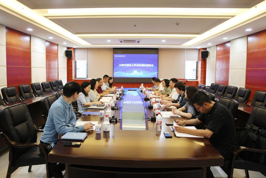 5月29日上午,天津外国语大学党委副书记胡志刚、教务处处长刘建喜、科研处处长刘宏伟、研究生院院长杨丽娜、人事处处长张涛、党办、校办副主任左健、人事处副处长彭氡一行七人到我校调研交流。我校党委常委、副校长郑白玲与教务处、科研处、研究生院(学科建设办公室)、人事处负责人参加座谈。