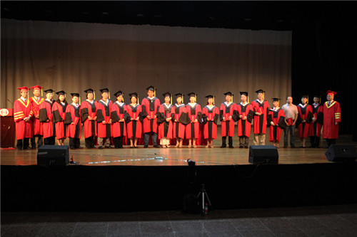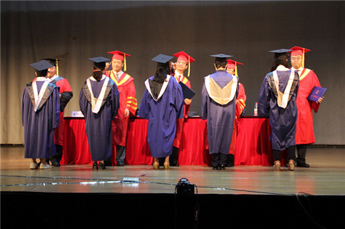 最后,在高昂的校歌声中,2014届硕士研究生毕业暨授位典礼结束。