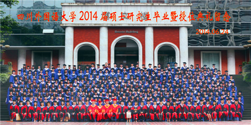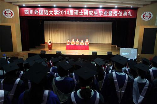 6月24日上午,四川外国语大学2014届硕士研究生毕业暨授位典礼在大礼堂隆重举行。出席此次毕业典礼的领导有校长李克勇、副校长李建平、副校长王鲁男、副校长董洪川、研究生院院长王仁强等。研究生指导教师和任课教师、硕士研究生培养单位领导、部分毕业生家长、研究生院全体工作人员和辅导员也参加了此次毕业典礼,与毕业生一起见证人生这一神圣的时刻。现场气氛庄严而隆重,毕业典礼由校党政办主任张季菁主持。