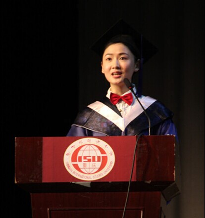 授位完毕后,毕业研究生代表万姗同学发言。她首先代表2014届全体毕业生向领导和老师们表示了感谢。她说,无论走到哪里,毕业生们都会谨记母校的教诲,秉承“团结、勤奋、严谨、求实”的川外校训和“守则、求实、开放、包容”的川外精神,脚踏实地,戒骄戒躁,为社会做出自己最大的贡献,报答母校的培养。