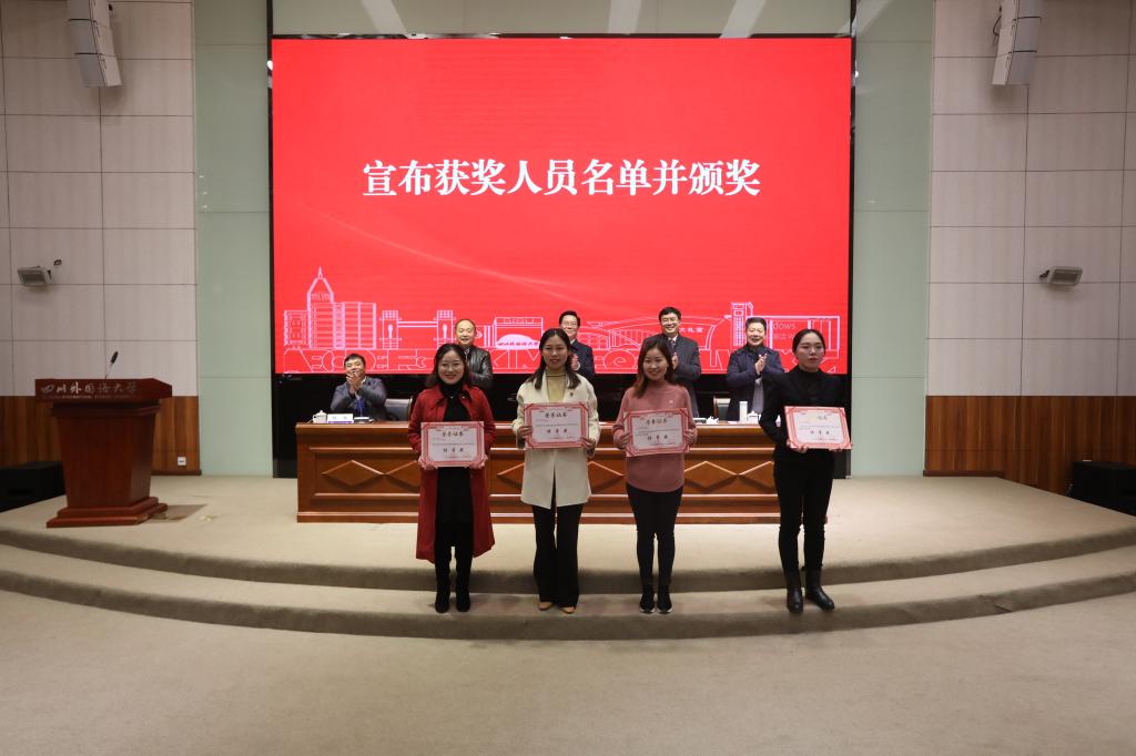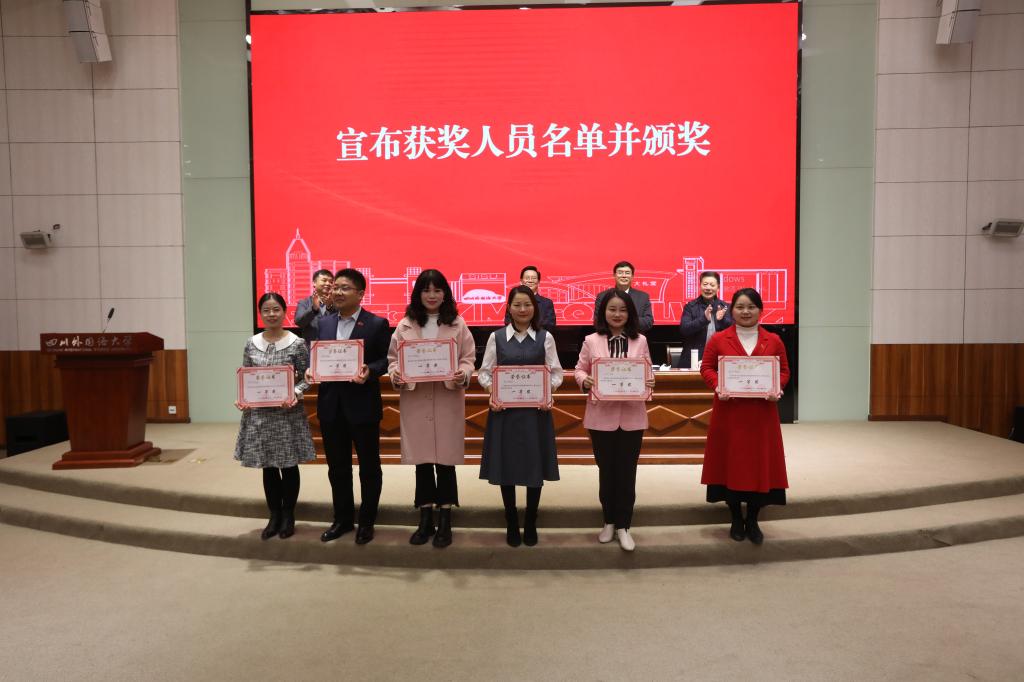 颁奖仪式上,市教委宣教处副处长程轶宣读了2020年重庆市高校思想政治理论课教师教学能力大赛决赛获奖名单。主席台领导为获得大赛特等奖、一等奖、二等奖、三等奖的40位教师颁奖。获得本科院校组第一名的彭雪容、独立学院和高职高专院校组第一名的毛隆凤分别发表了获奖感言。