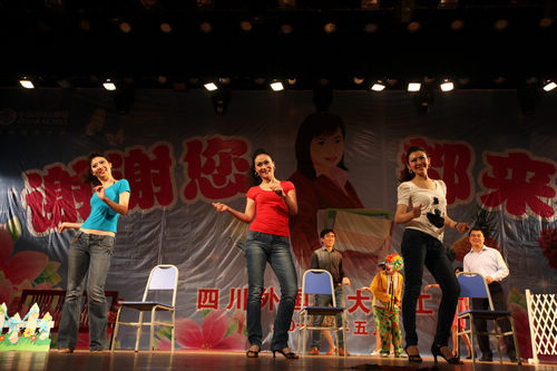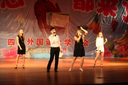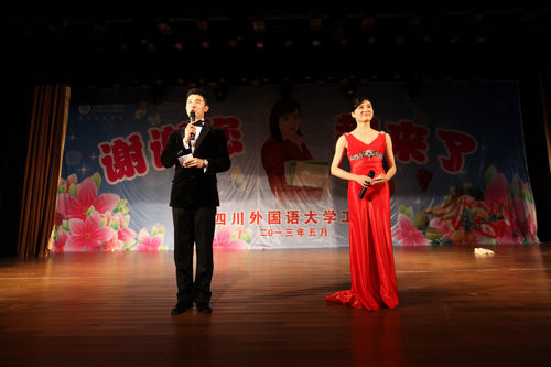 5月15日晚7点30分, 2013年四川外语学院教职工文艺晚会在东区大礼堂举行。校长李克勇、副校长李建平、副校长王鲁男、副校长李小川,及各个教学院系和部门领导亲临现场观看演出。朱明老师、宁昆艺老师、汪世珍老师以及陈派老师担任本次晚会的评委。