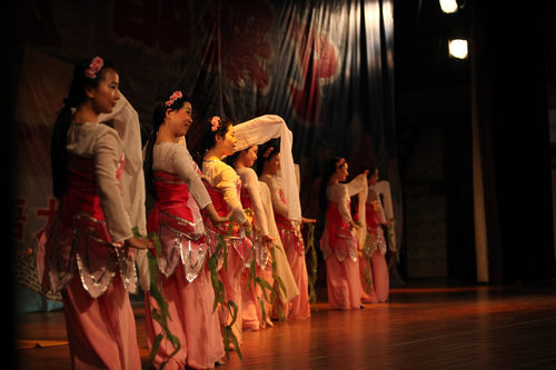 演出在歌乐乐团节奏轻快的三人器乐连奏中拉开序幕,川外附中老师伴随着《那年 那月 那天》的音乐,身着色彩明艳的服装带来了本次演出的第一支舞蹈。随后,各院系、各部门精彩纷呈的节目轮番上演。如英语学院小品《万能表演》的几位演员一出场便引起全场的轰动,“杨白劳”动作夸张,表情丰富,造型出彩“喜儿和爹爹”默契配合赢得全场观众的喝彩;翻译学院带来的舞蹈《佳人舞》用清新的曲调,古典的服装,优美的动作将女性的柔美充分表现出来;后勤集团的男声小合唱展现了阳刚之美;机关的拉丁健身操活力四射;英语学院的器乐伴奏《you raise me up》,给人温暖的感觉;大学外语教学部的舞蹈《青花瓷》美轮美奂;新闻传播学院的舞台剧《我要上川晚》轻松,幽默,让全场观众笑声不断,也将整个文艺演出推向高潮。