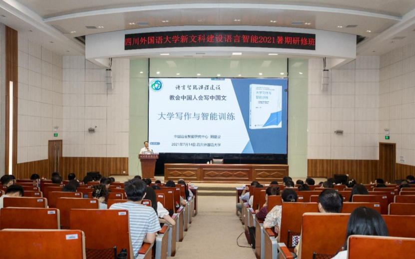 随后,“语言智能”学科概念的提出者、首都师范大学周建设教授作题为“大学写作与智能训练”的报告,现场演示人工智能的方法和手段,辅助学生的中文写作训练;把技术和语言结合在一起,用AI老师批改作文;并分享了团队在多项国家项目和语言智能学科建设中的心得,为研修学员指引了科研途径。