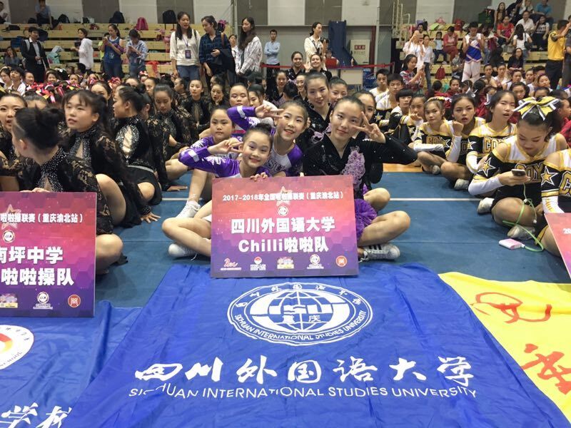 9月23日,2017-2018年全国啦啦操联赛(重庆渝北站)在渝北中学隆重举行。这是2017-2018赛季的首场赛事,也是重庆市第一次举办全国性啦啦操比赛,在此次比赛中我校Chilli啦啦操队斩获公开青年丙组花球校园啦啦操示范套路、公开青年丙组集体花球自选动作、公开青年丙组双人花球自选动作三个项目的冠军。