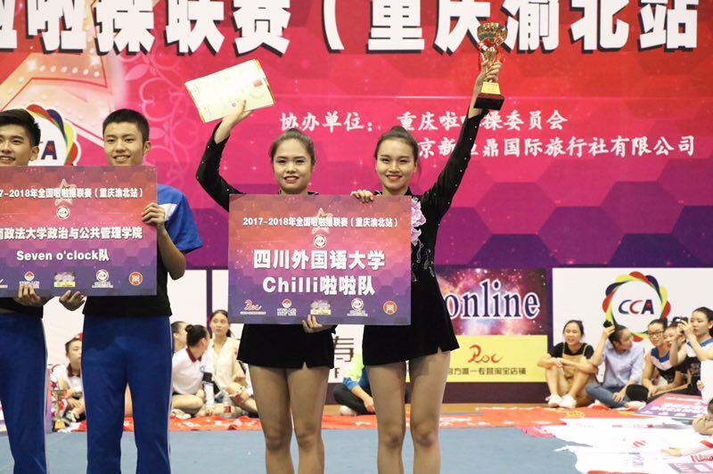 因队员出国、考研等种种原因,本次参赛的Chilli啦啦操队是在天津全国锦标赛后重新组建的,在新老队员的共同努力下,顶着重庆对手不容小觑的实力与外地对手来势汹汹的重重压力下,突破自我,稳定发挥,最终摘得头筹。