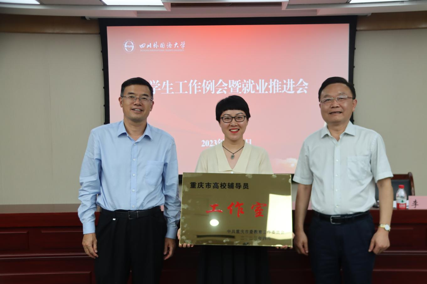 随后,李彦副校长通报本学期我校学工队伍团队和个人获得的重庆市7项荣誉和成绩。邹渝书记、李彦副校长向获得重庆市高校辅导员工作室——潘庆工作室授牌,同时也为重庆市2022年度高校优秀思想政治教育工作者何敏、高校优秀辅导员任晓丽、重庆市第十一届辅导员素质能力大赛优秀奖获得者张信颁发证书。