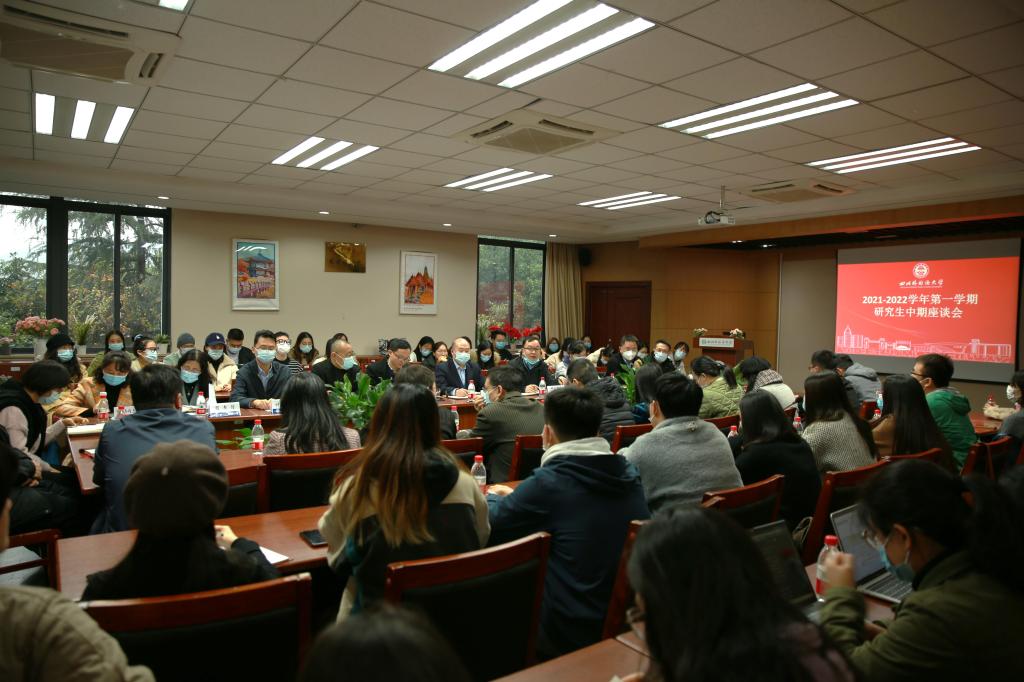 为搭建各培养学院、相关职能部门与研究生的交流、沟通平台,进一步优化资源配置,不断提高研究生教育教学质量,2021年11月11日下午,研究生院在立德楼C216组织召开2021-2022学年第一学期研究生中期座谈会。副校长王仁强,研究生院、学生处、招生就业处、后勤基建管理处、计划财务处、国际合作与交流处、网络信息中心、图书馆等相关职能部门负责人,各培养学院负责人及研究生代表出席。本次座谈会由研究生院院长赵永峰主持。
