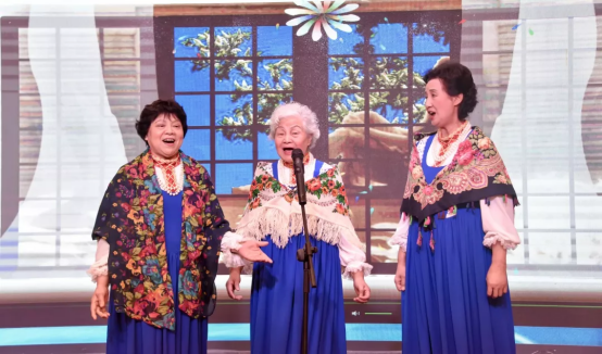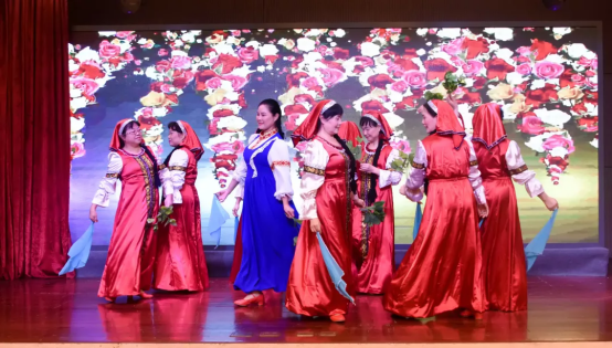 年会上,校友们还献上了精心编排的节目。八十多岁的邓敬庄校友带领重庆卡秋莎合唱团带来了波兰民歌合唱《小鸟》、俄罗斯民歌《纺织姑娘》、俄罗斯民族舞蹈《红莓花儿开》、女生三重唱《稠李树在窗外摇晃》《春天的夜晚》等。