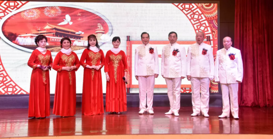 60年代校友合唱京剧《没有共产党就没有新中国》。