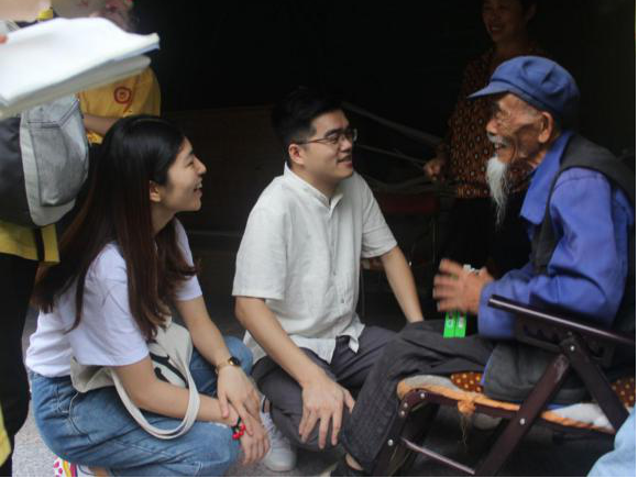 座谈会后,志愿者们一同前往附近的移民新村开展走访调研。在对移民新村基础设施进行详细考察的过程中,志愿者们走进村民家中,多角度了解高观近年的变化。一位92岁高龄的老人向志愿者们讲述了自己亲身经历的生活变化:房子越来越好了,家里收入也越来越多了。老人朴实无华的语言,道出了新中国成立70周年一步步的变化与成就。老人说:“尤其是近几年,国家开展精准扶贫,政策越来越好,养老保障服务也越来越完善,日子越过越红火。