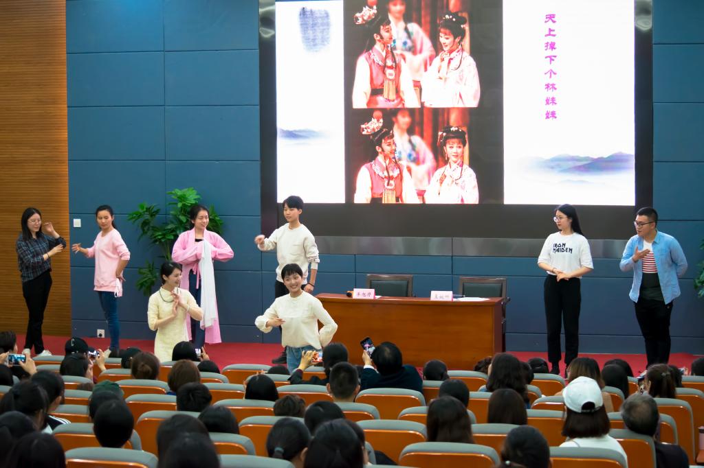 应现场观众之邀,二位嘉宾倾情献唱越剧《天上掉下个林妹妹》,现场观众热情地与之共同演唱,活动落下帷幕。