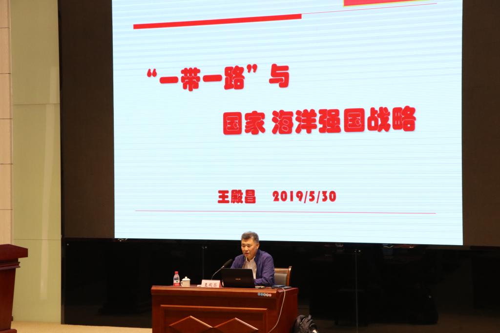 王殿昌研究员作了题为《“一带一路”与国家海洋强国战略》的专题讲座。王殿昌从时代背景入手,分析了国内外环境,阐释了为什么要推进“一带一路”建设以及加快海洋强国建设。随后,王殿昌从国际海洋法律与海洋地位、我国海洋权益与面临问题、世界海洋大国海洋战略与我国海洋强国建设等三方面进行了深入浅出的讲解和分析,并再次强调了“一带一路”建设和海洋强国建设的重要现实意义和战略意义。