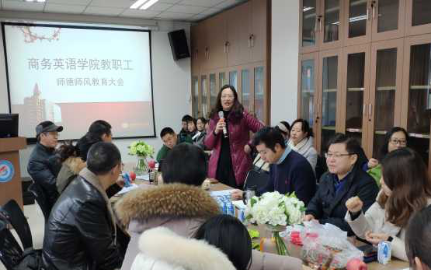 1月4日下午,郑白玲副校长出席了商务英语学院师德师风教育大会。大会在商务英语学院会议室召开,学院党政领导班子和全体教职员工参加了此次会议。大会由学院党总支书记岳兴懋主持。