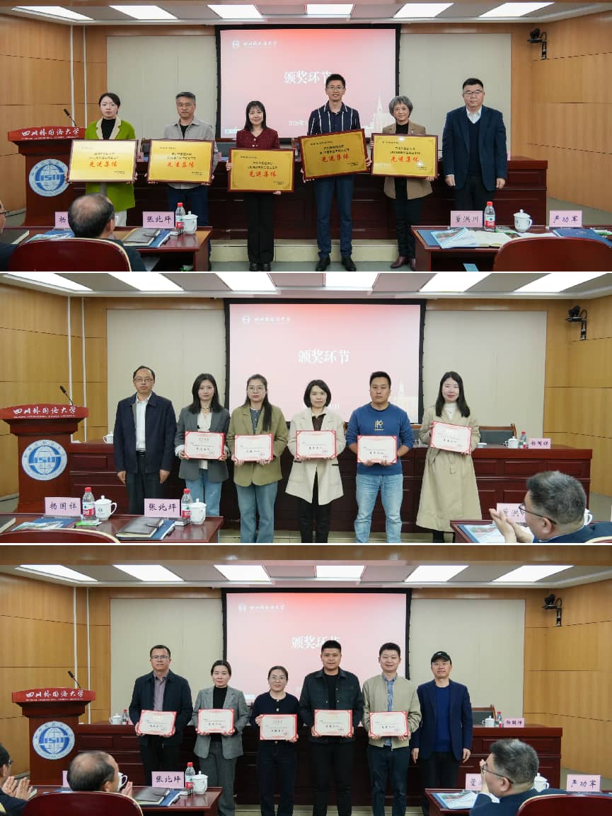 副校长张北坪宣读《四川外国语大学关于表彰2025届毕业生就业工作先进集体和先进个人的决定》。与会校领导为获奖集体和个人颁发奖牌和证书。