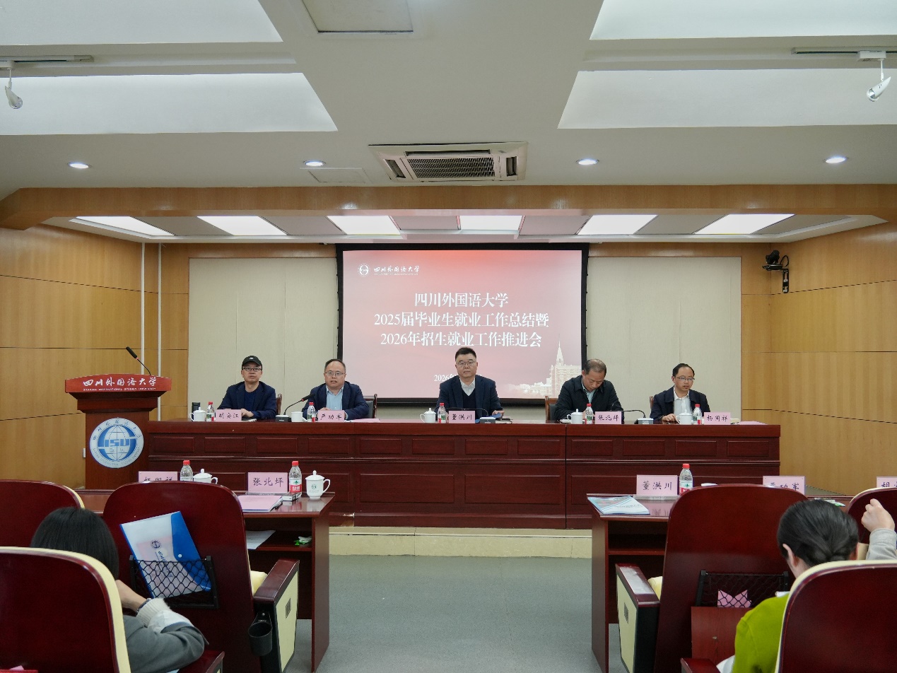 3月31日下午,四川外国语大学2025届毕业生就业工作总结暨2026年招生就业工作推进会在立德楼A609会议室举行。校长董洪川出席会议并讲话,在校校领导出席会议,会议由副校长严功军主持。
