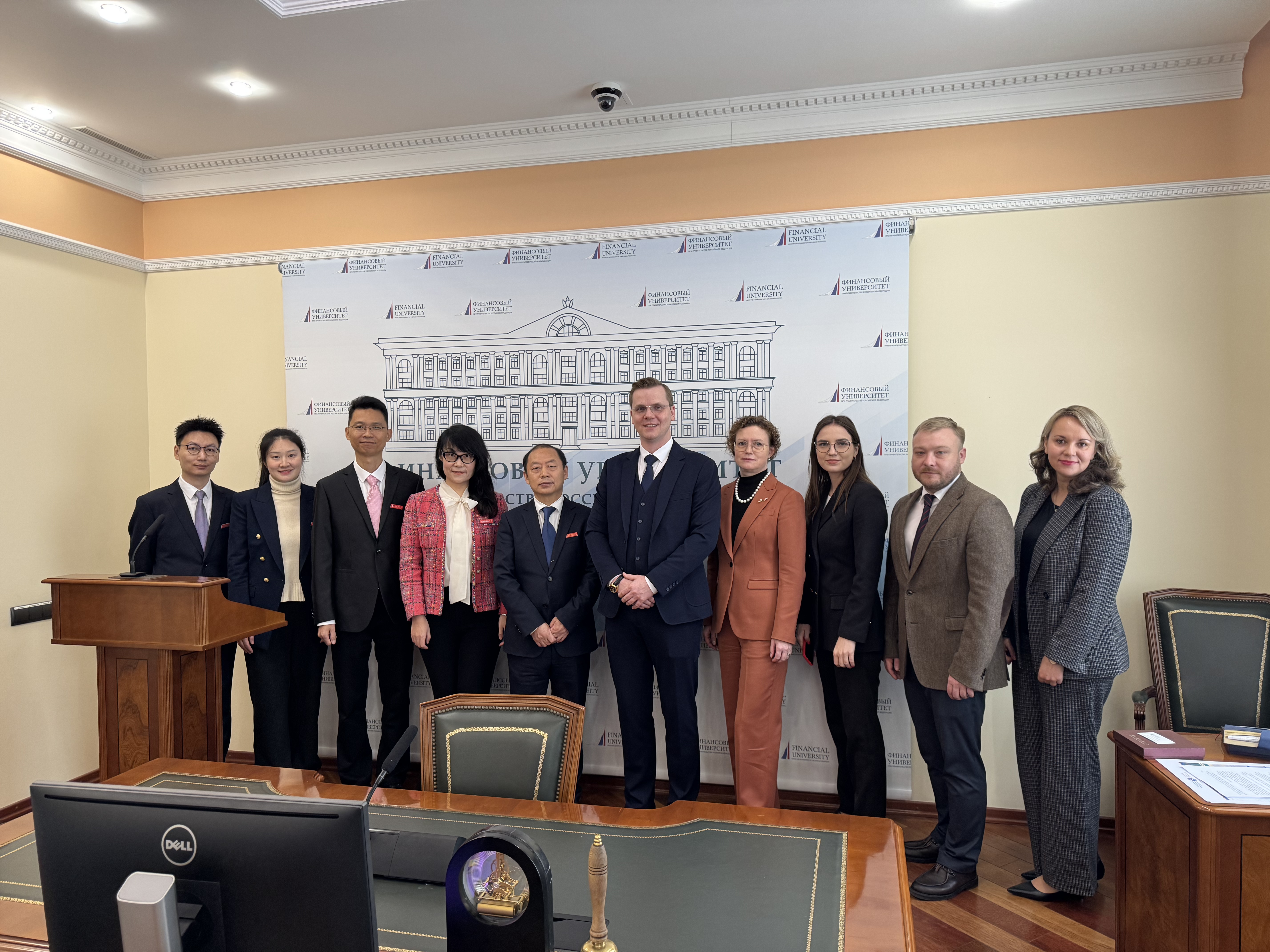 10月30日,代表团转赴俄罗斯联邦政府财经大学。在与该校副校长阿纳托尼·谢尔盖耶维奇·基斯利亚科夫的工作会谈中,双方在既有合作框架基础上就推进落实多项具体合作达成共识。双方将进一步开展科研合作与教材编写、推进学生互换项目,并深入探讨在“俄语+国际经济与贸易”交叉专业建设方面的合作路径。