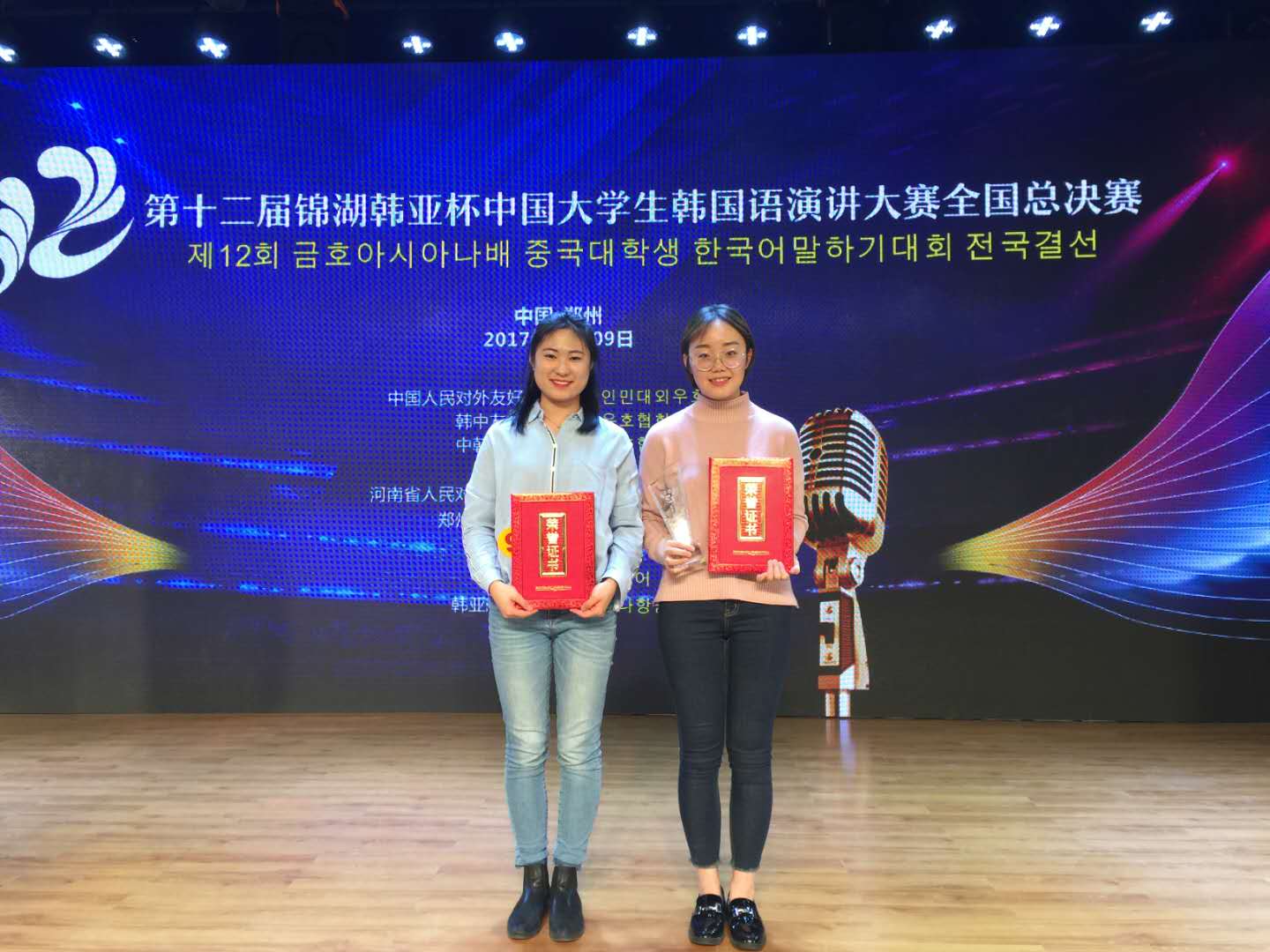 2017年12月9日,第十二届“锦湖韩亚杯”全国大学生韩国语演讲大赛全国总决赛在河南郑州举行。大赛由中国人民对外友好协会、中韩友好协会、韩中友好协会联合发起,自2006年举办至今,已成功发展为全国参加学校最多、水平最高、最具有权威、最有影响力的韩国语演讲大赛。在大赛举办的第12个年头,来自全国100多个高校200多名选手的参赛。经过激烈角逐,脱颖而出的25名优秀选手最终进入总决赛。